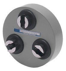 Brunson's 6204 is used for the same purposes as the smaller 6202, but this mirror provides a much larger field of view. This is an advantage when you are autoreflecting or autocollimating at greater distances. Its circular front surface mirror is 4" (101.6 mm) in diameter. Its reflecting surface is flat to within ¼ wavelength of light over any area not greater than 50 mm in diameter. Three magnetic feet are cemented to the back of the mirror (see photo below). Their contact surfaces are ground parallel to the mirror surface to within 3 arcseconds.