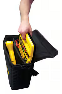 - Includes: Transmitter, receiver, direct connect cables, transmitter charger, belt holster, grounding rod, and soft-sided shoulder bag